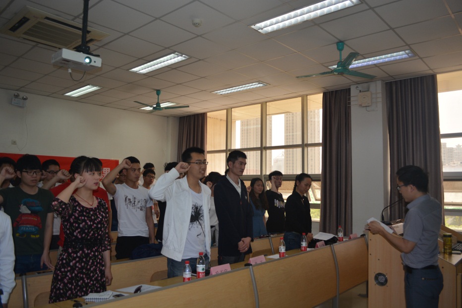 分团委书记易幸存的带领下,全体到会团员用青春的激情和坚定的语气重温了入团誓词:“我自愿加入中国共产主义青年团,坚决拥护中国共产党的领导,遵守团的章程,执行团的决议,履行团员义务,严守团的纪律,勤奋学习,积极工作,吃苦在前,享受在后,为共产主义事业而奋斗。”