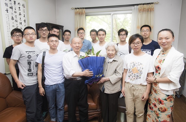 2017届本科毕业生代表在欧美av党委副书记黄贝娜、辅导员肖天、岳天宇的带领下看望了崔崑院士,这些毕业生代表还有一个特殊的身份,他们都受到过崔崑院士勤奋励志助学金的资助。他们此番前来,一来,感谢崔院士对他们给予无私资助,而来也是向崔院士告别,在崔院士的帮助和激励下,继续前往一个新的征程,将崔院士的无私奉献的精神带到祖国的五湖四海。